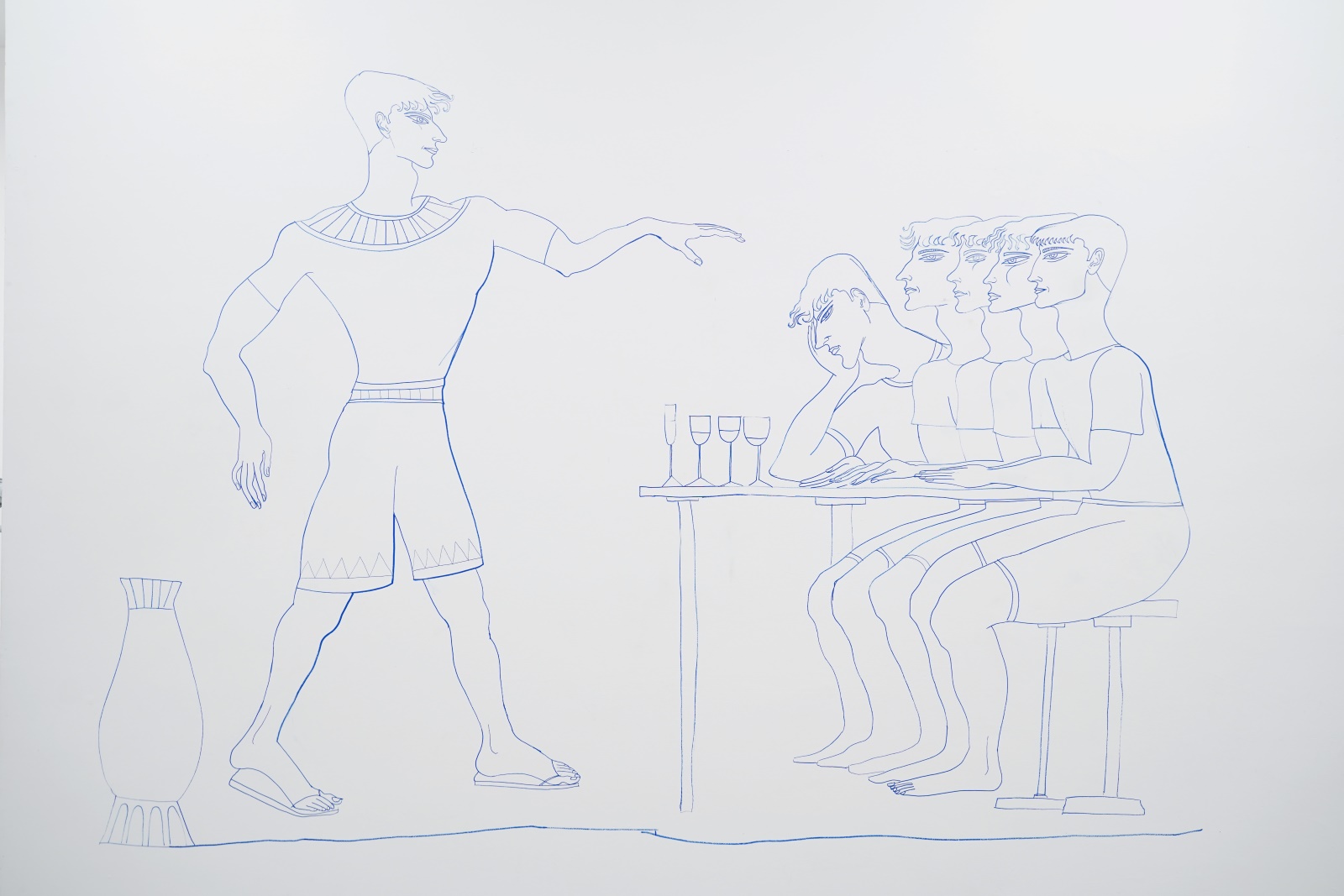 Izložba Filipa Savkovića predstavlja logičan nastavak i dalji razvoj tema koje ga kao stvaraoca okupiraju. U svom karakterističnom sinkretističkom duhu, autor, kako konceptualno, tako i likovno, kombinuje tematski srodne elemente različitih kultura, škola mišljenja i religija, insistirajući na univerzalnosti ljudskog iskustva, tj. njegovog posebnog aspekta: ljubavi. Na izložbi pod nazivom „Symposium”, on transformiše prostor galerije crtajući po zidovima, uvodeći nas u svojevrsni hram.