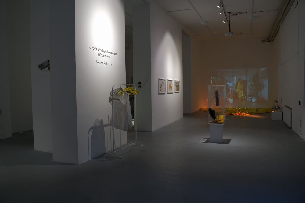 U voštanoj sobi proliveno mleko biće žute boje. Now you know. No, postoji još nekoliko stvari o kojima možeš razmisliti, sada kada smo [na]… ti. Recimo, o tome kako umetnička dela art:ikulištu telesnost u prostoru. Ili o tome da dugo nisi dodirnuo travu, udisao med, osetio vunu i zlatnu foliju… pored sebe. Jednostavno, nisi baš ovako gledao na stvari. Izvesno je da ćeš se zadržati još malo. Ćutiš. Odlaziš u žutom. Ć!